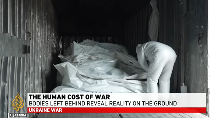 Reportajdaə digər kadrlarla yanaşı, onlar Ukraynada işğalçılar tərəfindən oğurlanmış əşyaları və həlak olan rus hərbçilərinin cəsədləri olan soyuducu vaqonu nümayiş etdiriblər. .