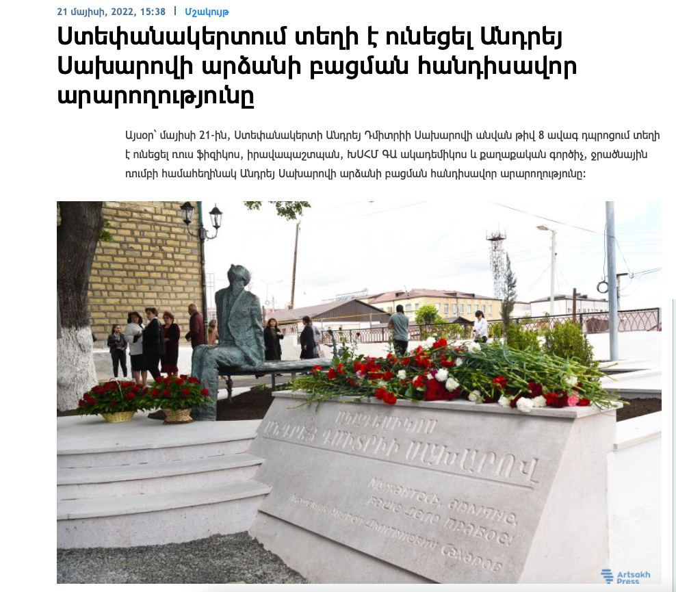 Telegram kanalları bu gün Xankəndi şəhərindəki məktəbin yaxınlığında Saxarovun eyni heykəlinin qoyulduğunu bildirib.