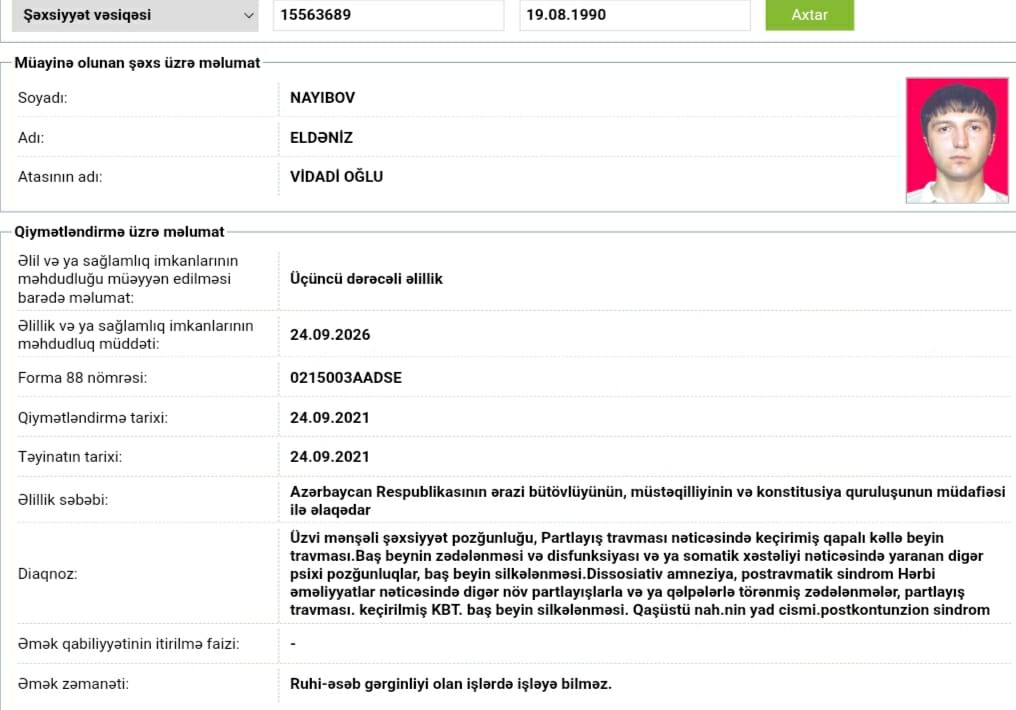Üçüncü dərəcə əlilliyi olan Eldəniz Vidadi oğlu Naibov əlilliyini 24 sentyabr 2021-ci ildə alsa da, 4400 manat sığorta pulunu bu günədək ala bilməyib. Bu pulların ayrıldığı bəllidir. Bəs bu pulun verilməsində niyə aidiyyatlı qurum «sancı» çəkir? Siz kimlərə xidmət etdiyinizin fərqindəsinizmi?