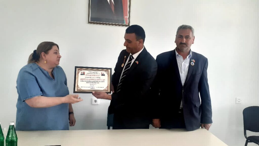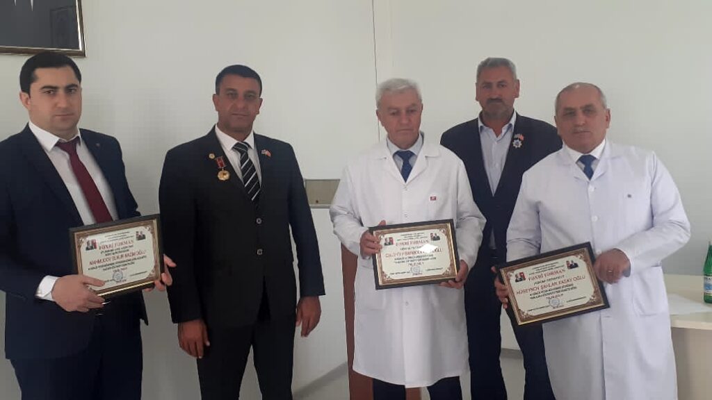 Beyləqan rayon Xəstəxanasının bir qrup həkiminə Şəhid Ailələrinə «Qayğı» Cəmiyyətinin Fəxri fərmanı təqdim edilib.