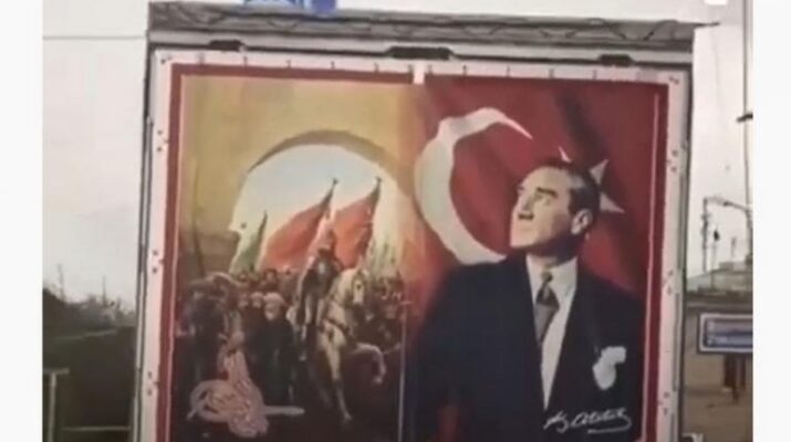 Ermənistanın paytaxtı İrəvanın küçələrindən üzərində Mustafa Kamal Atatürk və Fateh Sultan Mehmedin portretləri olan yük maşını keçib.