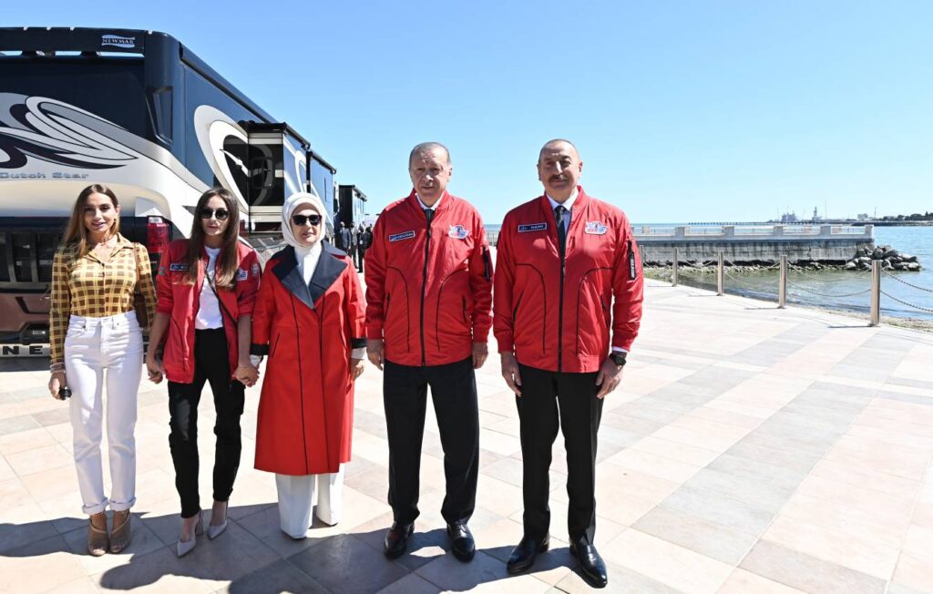 Birinci xanımlar Mehriban Əliyeva və Əminə Ərdoğan, həmçinin Sümeyyə Bayraktar və Arzu Əliyeva xatirə fotoları çəkdiriblər.