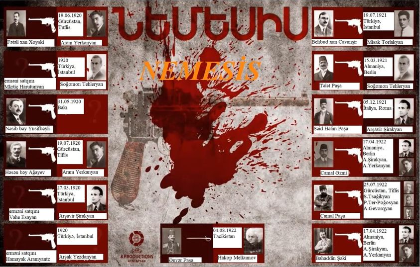 1920 — 1922 — ci illərdə erməni terror təşkilatı olan «NEMESİS» — in (yunancadan tərcüməsi QİSAS deməkdir) qaniçən üzvləri tərəfindən qətlə yetirilmiş Azərbaycan və Türkiyə Dövlət Xadimlərinin, həm də terrorçu ermənilərin siyahısı.