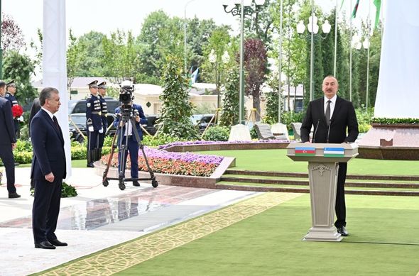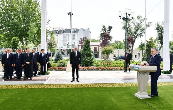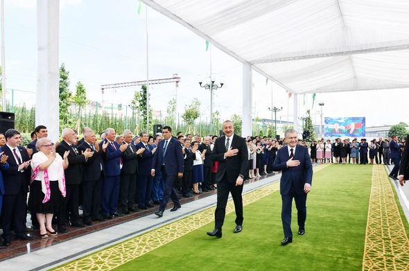 Özbəkistanın və Azərbaycanın dövlət başçıları mərasimdə çıxış ediblər.