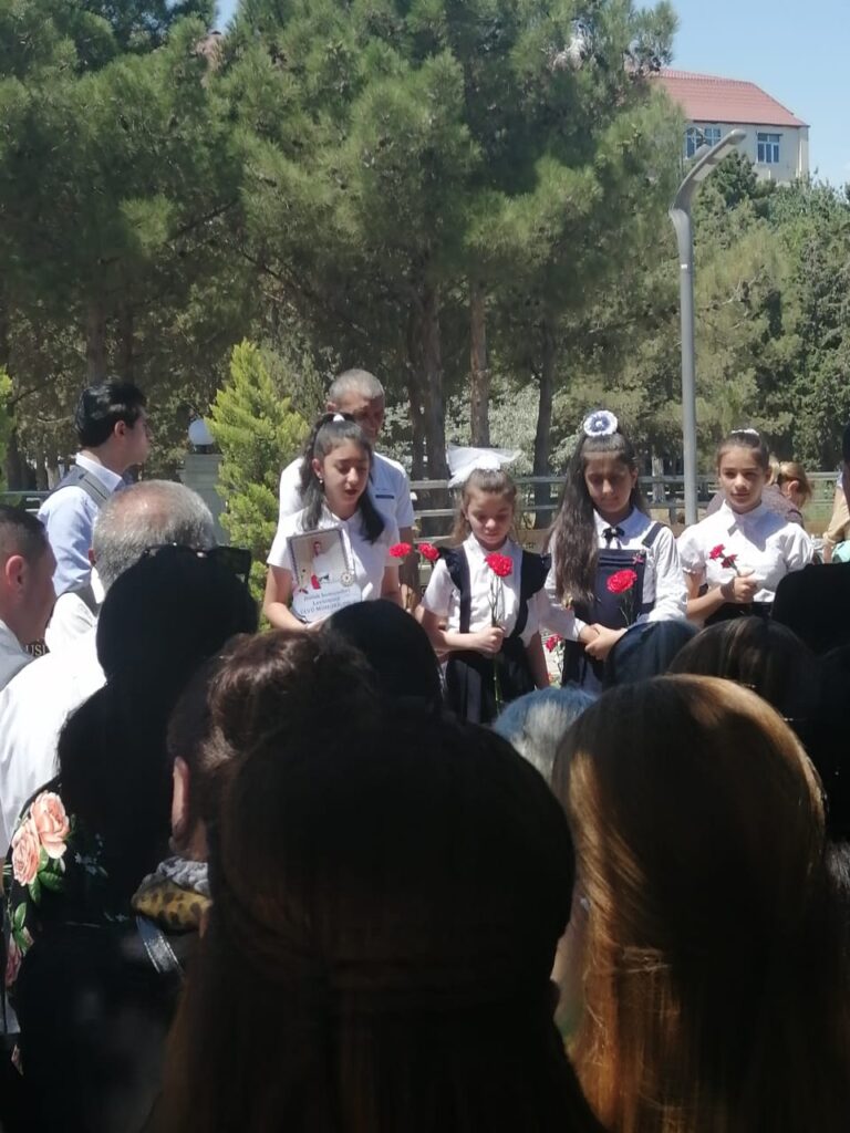 Mərasimdə iştirak edən məktəblilər hərbi vətənpərvər mövzularda şeirlər səsləndirdilər.