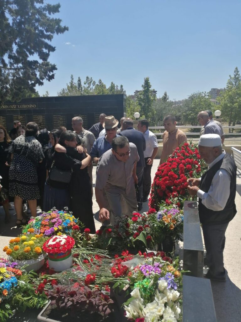 Şəhid Ülvü Məhərrəmovun məzarı ziyarət olunub, gül qoyulub və ruhuna dualar oxunub.