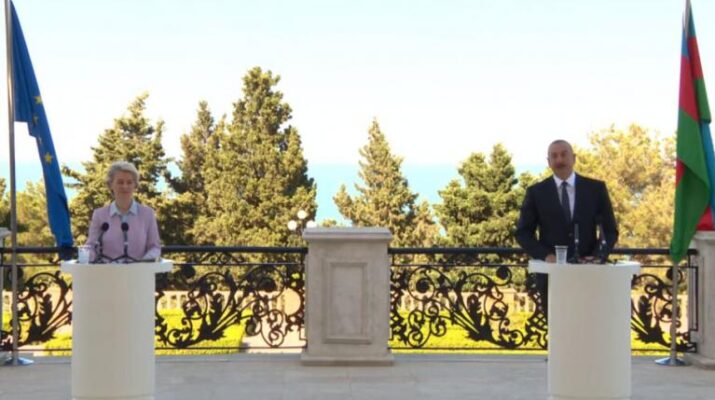 Azərbaycan Respublikasının Prezidenti İlham Əliyev və ölkəmizdə səfərdə olan Avropa Komissiyasının Prezidenti Ursula Fon der Lyayen mətbuata birgə açıqlama verirlər.