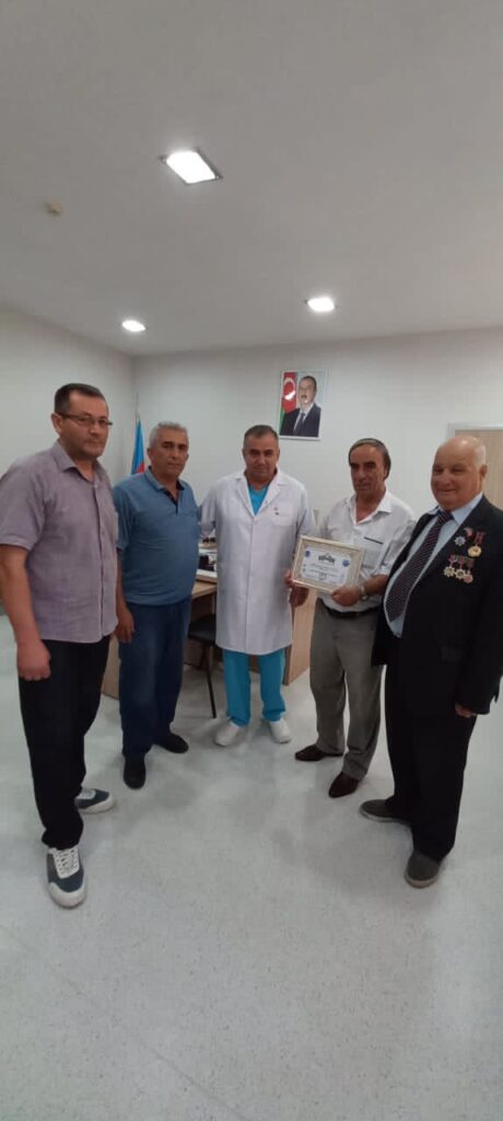 Daha sonra həkimlər Mətləb Musayev, Arif Abdurəhmanov, Abdurəhim Cəfərov və Sevinc Nəsibova müharibə veteranlarına göstərdikləri diqqət və qayğıya görə Azərbaycan Vətən Müharibəsi Veteranları İctimai Birliyinin (AVMVİB) Fəxri fərmanıyla təltif edilib.