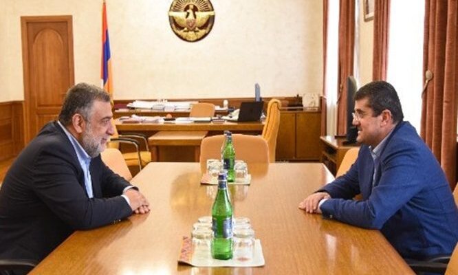 Qondarma qurumun “prezidenti” Arayik Arutyunyan sentyabrın 8-də Rusiyadan Qarabağa köçən Ruben Vardanyanla görüşüb.