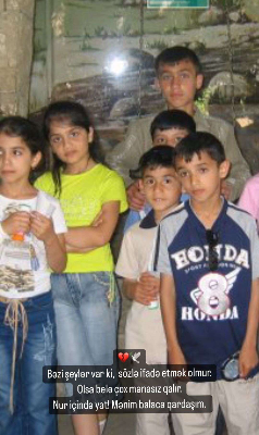 O qeyd edib ki, qardaşı və özü körpə olanda valideynləri vəfat edib, onlar SOS kəndində böyüyüblər: