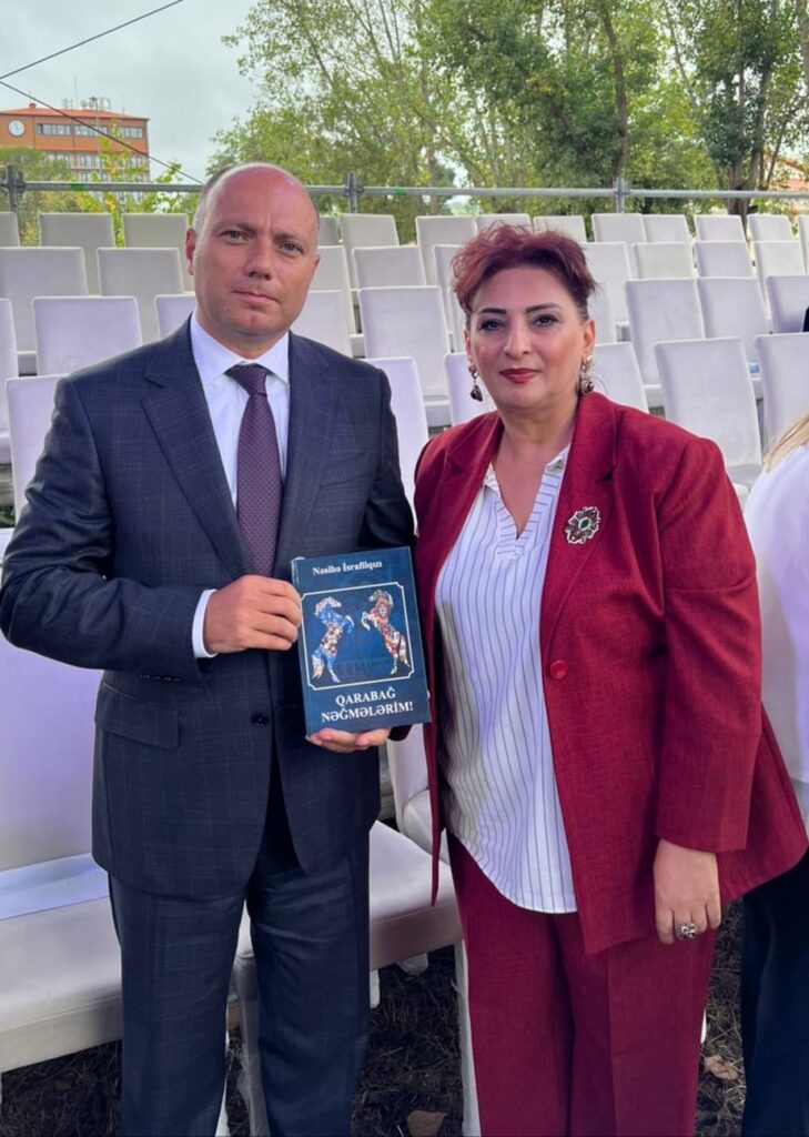 Qeyd etdiyimiz kimi Azərbaycan Vətən Müharibəsi Veteranları İctimai Birliyi (AVMVİB)-in ideoloji məsələlər üzrə müşaviri, sairə publisist Nəsibə İsrafilqızı da bu təbbirdə iştirak etmiş və hörmətli nazirimiz Anar Kərimova öz kitabını hədiyyə etmişdir.