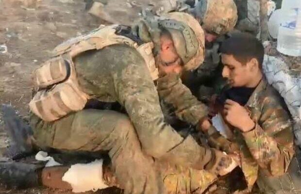 Azərbaycan hərbçilərinin əsir düşmüş yaralı erməniyə ilkin yardım göstərməsini əks etdirən daha bir video yayılıb.