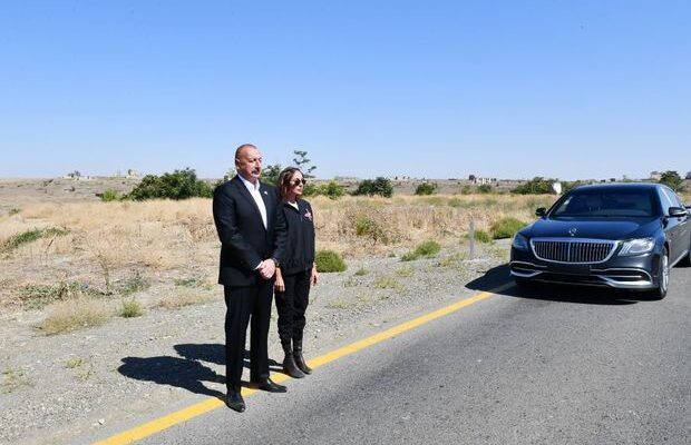 Prezident İlham Əliyev və Birinci vitse-prezident Mehriban Əliyeva Füzuli rayonunun Qaraxanbəyli kəndində 27 Sentyabr – Anım Gününə həsr olunmuş xatirə lövhəsinin önünə gül dəstələri qoyublar.