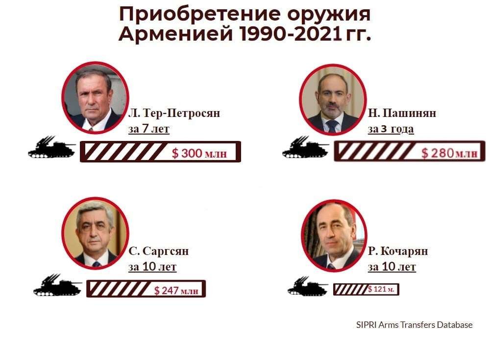 Ermənistan 2018-2021-ci illərdə 280 milyon dollar dəyərində silah idxal edib. Hansı Ermənistan Respublikası liderinin dövründə silahlanmaya nə qədər pul xərclənib?