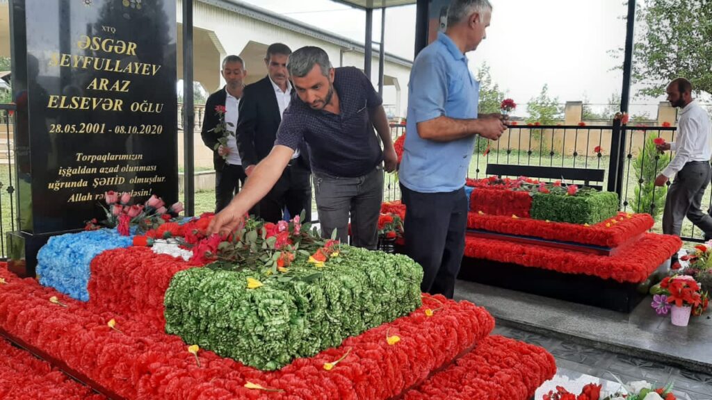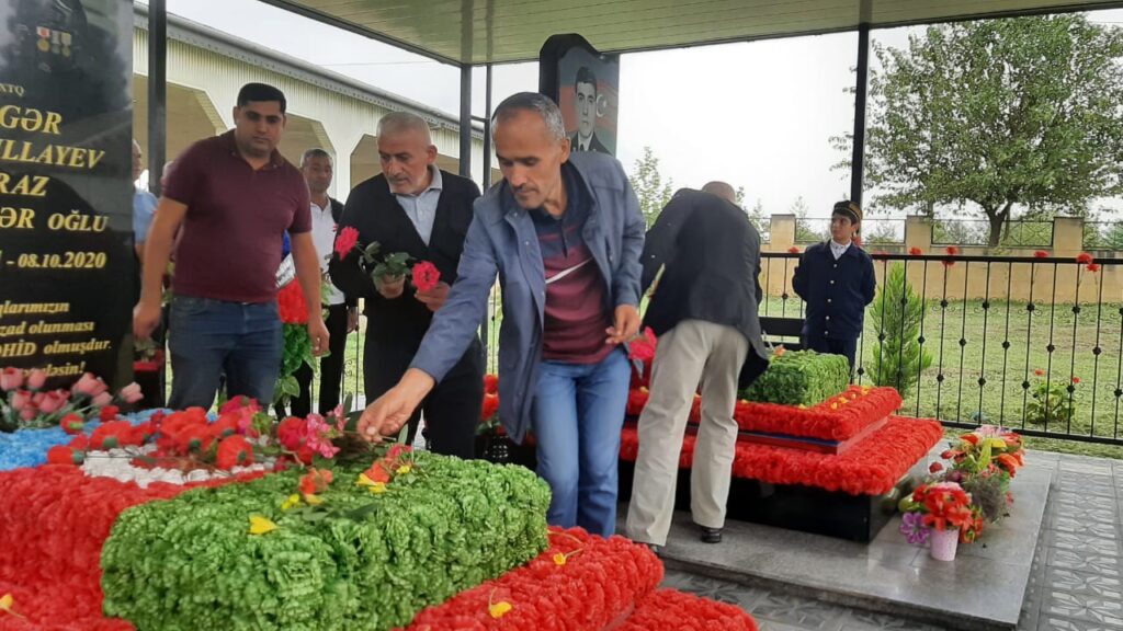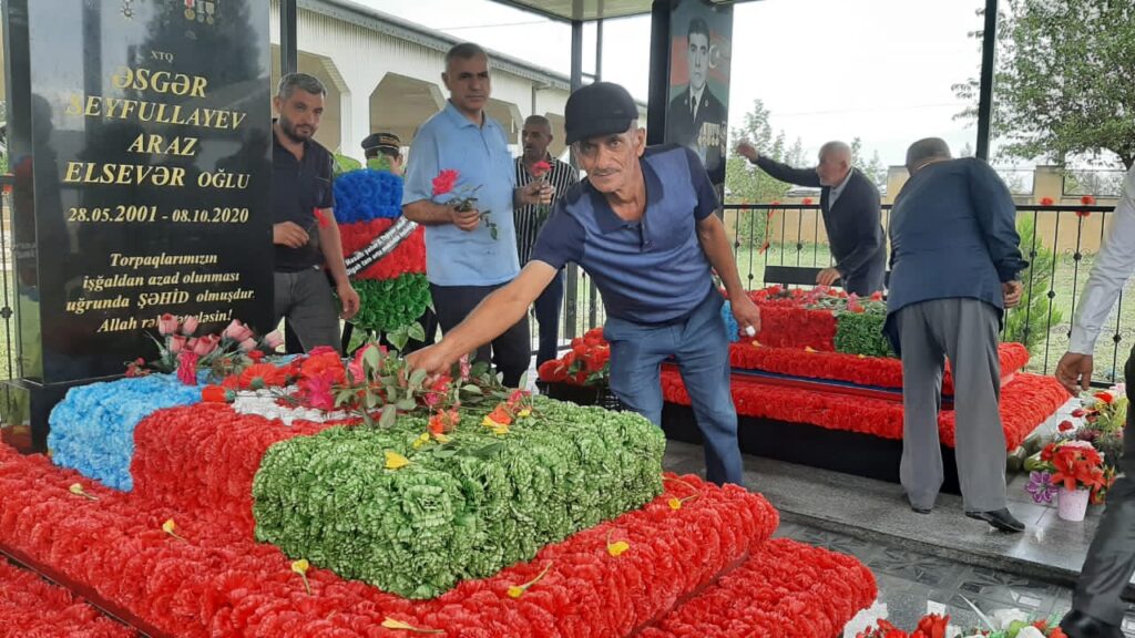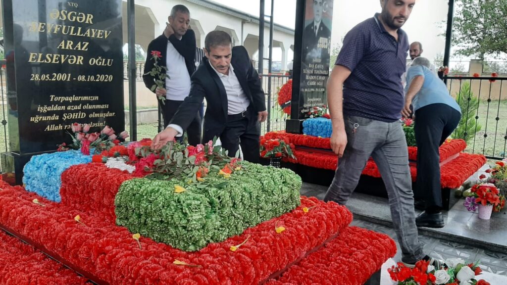 Şəhid Araz Seyfullayevin ildönümündə iştirak edənlər məzr üzərinə gül qoyub şəhidin ruhuna dualar ediblər.