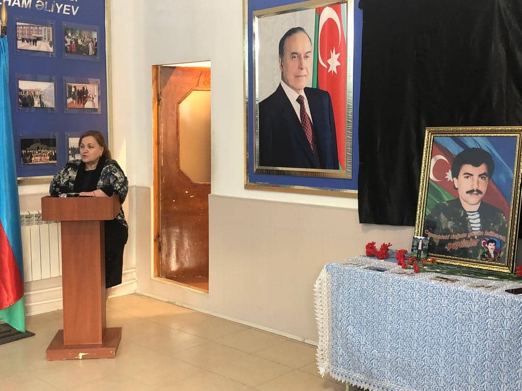 Şəhidin doğum gününü təbrik edən 84 nömrəli tam orta məktəbin direktor müavini Bəxtiyar Zamanov və təhsil ocağının müəllimi Nüşabə Quliyeva şəhid haqqında öz xatirələrini bölüşüblər.