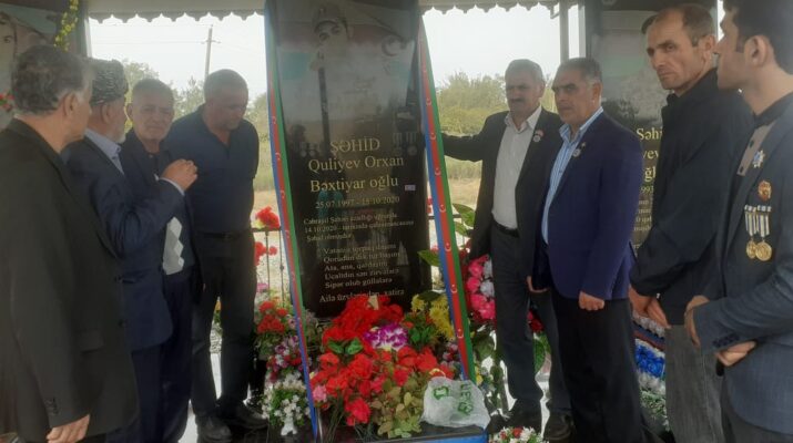 Şəhidin məzarı üzərinə güllər qoyulub və ruhuna dualar oxunub.