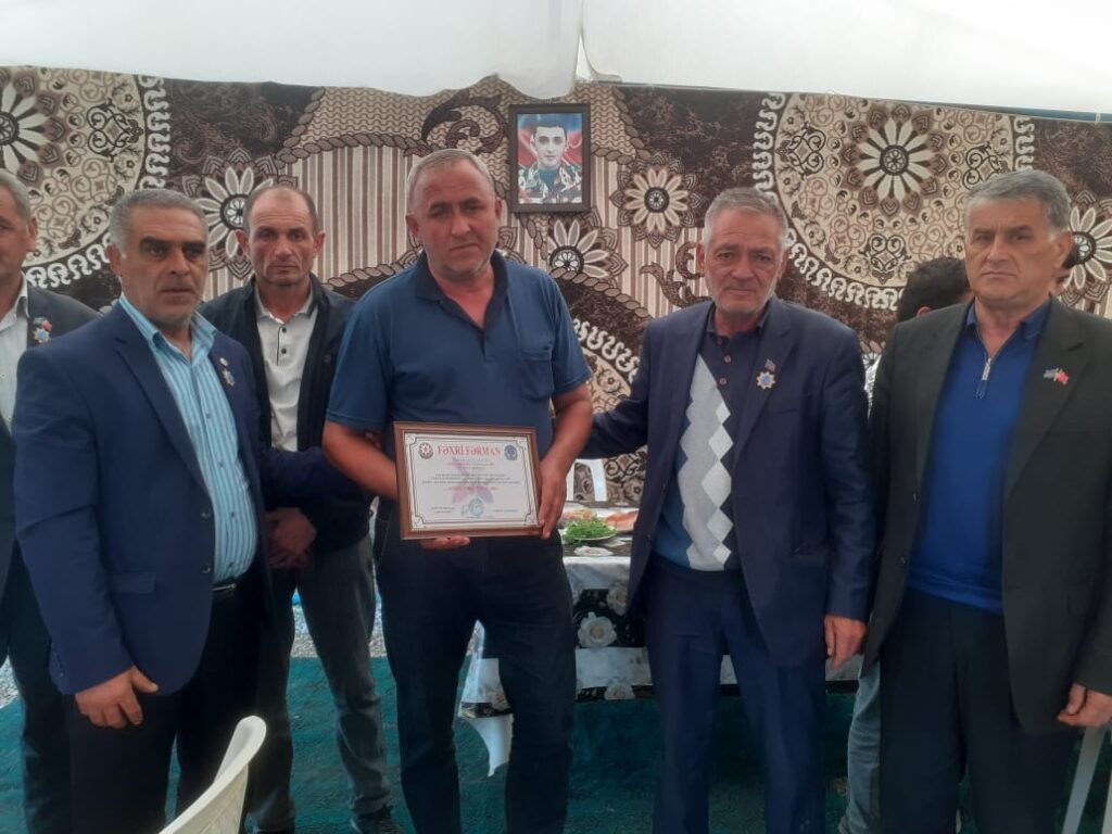 Azərbaycan Vətən Müharibəsi Veteranları İctimai Birliyi (AVMVİB) sədrinin səlahiyyətli nümayəndəsi, AVMVİB Xocavənd rayon şöbəsinin sədri Akif Həsənov və Azərbaycan Vətən Müharibəsi Veteranları İctimai Birliyi (AVMVİB) Beyləqan rayon şöbəsinin sədri Əlövsət Məmmədov AVMVİB sədri Füzuli Rzaquliyev adından şəhidin yaxınlarına başsağlığı vermiş və şəhidin atasına Fəxri fərman təqdim etmişlər.