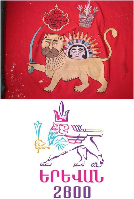 Ancaq yad bir ölkəni, yad şəhəri ələ keçirərək, guya yaşı “2800 il” olan qədim “erməni Erebuni” haqqında əfsanə uydursa da, erməni millətçiləri bu “Erebuni” üçün heç bir orijinal simvol tapa bilməyib Qacar şirini mənimsədilər. Sadəcə olaraq Qacarların herbinin üzünü köçürüblər.