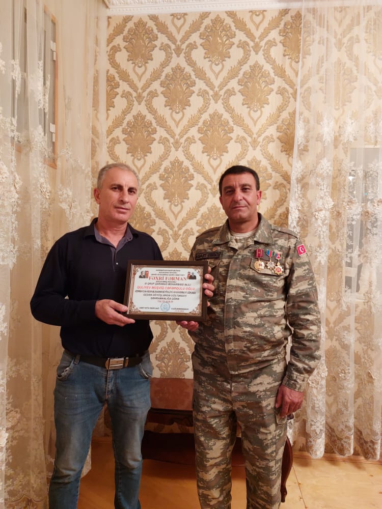 H. Gülməmmədovun verdiyi məlumata görə III qrup müharibə əlili Müşfiq Quliyev Fəxri fərmanla təltif edilib.