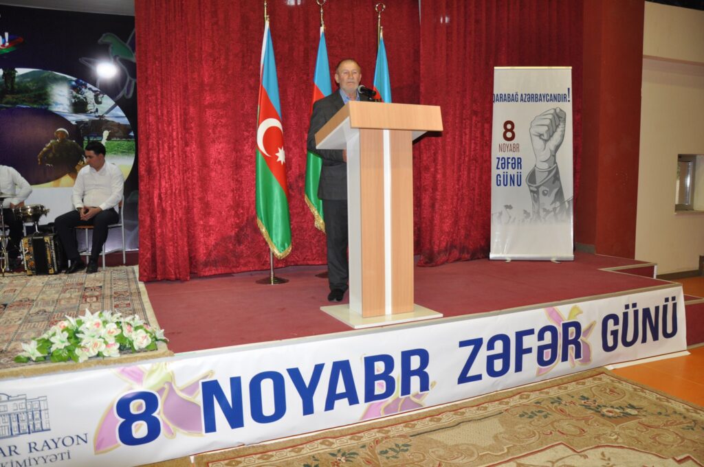 Biləsuvar Rayon İcra Hakimiyyətinin təşkilatçılığı ilə 8 Noyabr Zəfər Gününə həsr olunmuş ümumrayon tədbirində Biləsuvar Rayon İcra Hakimiyyətinin Başçısı Faiq Qürbətov, Milli Məclisin deputatı Bəhruz Məhərrəmov, rayon İcra Hakimiyyəti başçısı aparatının əməkdaşları, hüquq mühafizə orqanlarının, YAP Biləsuvar rayon təşkilatının, idarə, müəssisələrin rəhbərləri, şəhid ailələri, qazilərimiz və ictimaiyyətin nümayəndələri iştirak etdi.