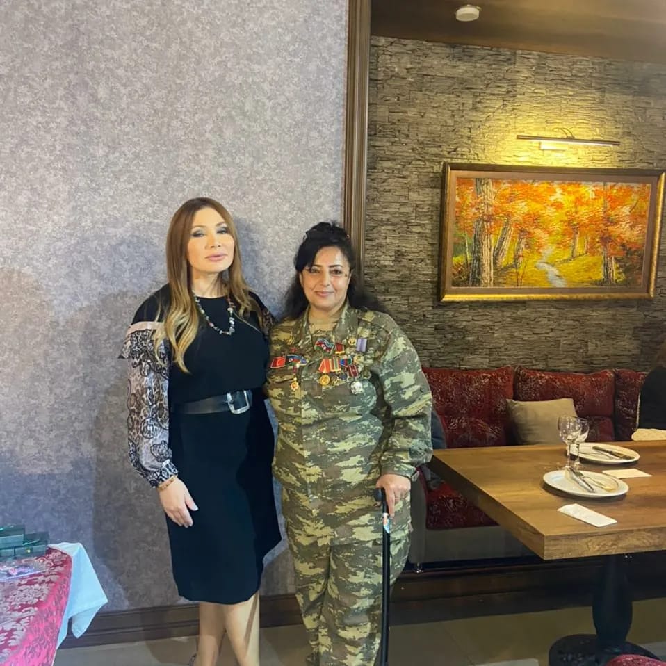 Fəxriyyə Xələfova tədbirdə iştirak edən müharibə qazisi, AVMVİB Nəsimi rayon şöbəsinin üzvü Ruxsarə Cumayevanı Zəfər Günü münasibətiylə təbrik etdi və əl işlərindən birini xanım döyüşçüyə hədiyyə etdi. Məşhur modelyer F. Xələfova çıxışında cənab İlham Əliyevin komandanlığı altında qazanılmış Zəfər münasibətiylə iştirakçıları təbrik edib və şəhidlərə Allahdan rəhmət diləyib.