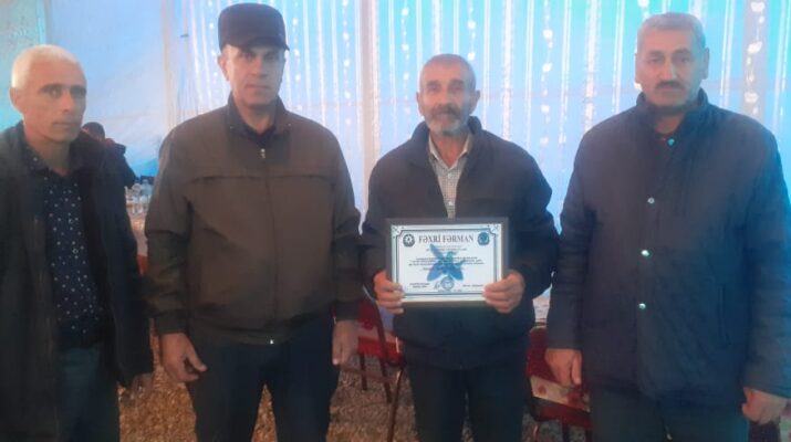 Azərbaycan Vətən Müharibəsi Veteranları İctimai Birliyi (AVMVİB) Beyləqan rayon şöbəsinin sədri Əlövsət Məmmədov Birlik adından şəhidin atasına Fəxri fərman təqdim etdi.