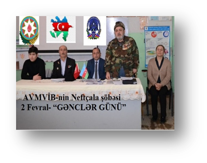 Azərbaycan Vətən Müharibəsi Veteranları İctimai Birliyi Neftçala rayon şöbəsi, Ə.Cəfərov adına Bankə 1 saylı tam orta məktəbdə, Gənclər günü ilə əlaqədəar olaraq tədbir keçirtdi. Tədbirdə, Neftçala rayon Bənkə qəsəbəsinin İƏD üzrə nümayəndəsi Nağıyev Tarel Tarix oğlu, UNDP nin Neftçala rayon üzrə hüquqşunası Hüseynov Elvin Hilal oğlu, AVMVİB-nin qaziləri, Şəhid ailələri və məktəbin müəllim və şagird heyyəti iştirak etdilkər.