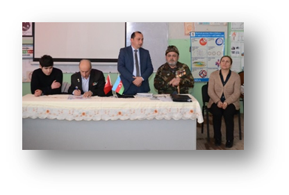 1 saylı Bankə məktəbinin direktoru Hüseynova Gülnar — Azərbaycan Vətən Müharibəsi Veteranları İctimai Birliyi Neftçala rayon şöbə sədrinin təşkilatı məsələlər üzrə müavini Seyyid Mübariz Ağa 2 Fevral Azərbaycanda “Gənclər Günü” tədbirinin kecirilməsi ilə bağlı məktəbimizə müraciyət etdi. Özünü və təşkilatı tanıdığımız üçün bu tədbirin bizim məktəbdə kecirilməsinə razılıq verildi.