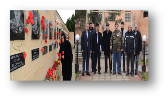 qəsəbəsində yerləşən şəhidlərin abidələri ziyarət olundu, şəhid ailələri ilə birgə əkil qoyuldu