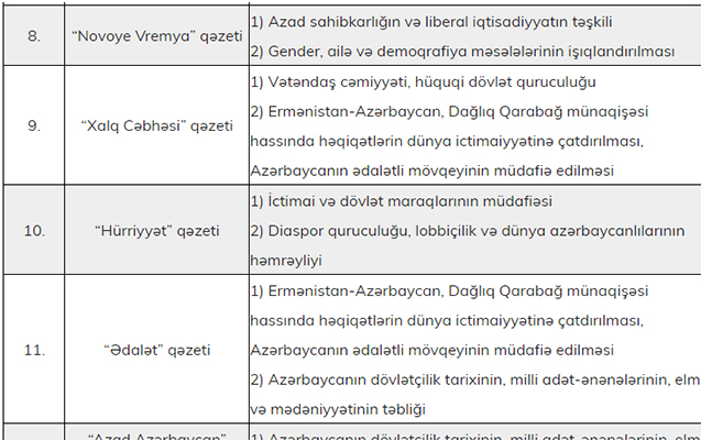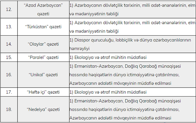 | 12. | «Azad Azərbaycan” qəzeti | 10000 |