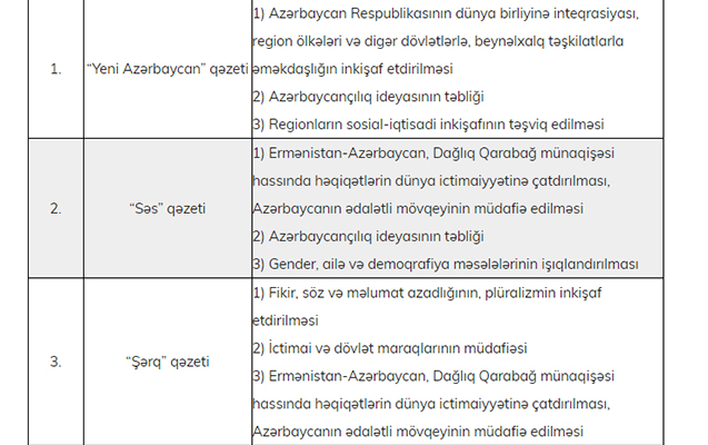 | 3. | «Yeni Müsavat” qəzeti | 20000 |