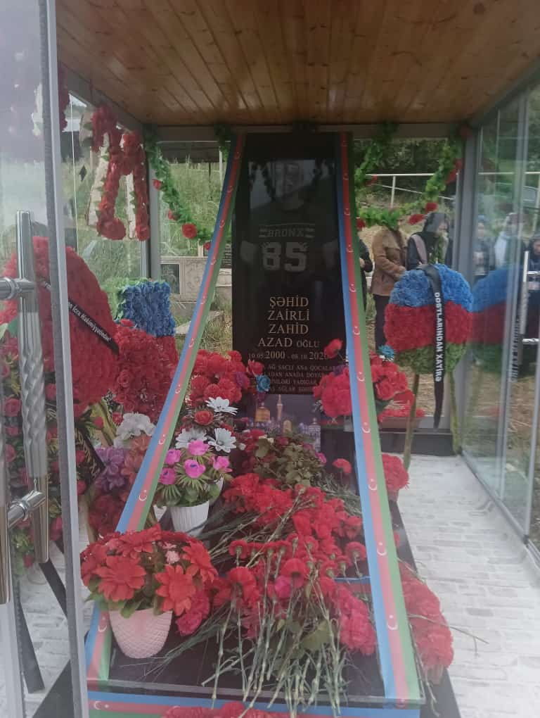 Şəhidin məzarına gül dəstələri düzülüb,ruhuna dualar oxunub.
