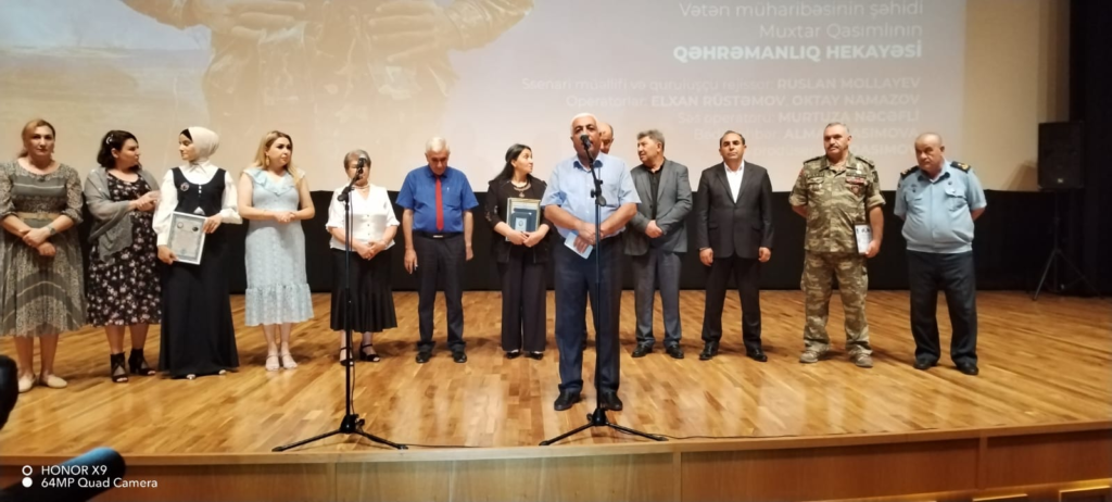 Təqdimat mərasimində Azərbaycan Vətən Müharibəsi Veteranları İctimai Birliyinin (AVMVİB) sədri Füzuli Rzaquliyevin əmri ilə şəhid Muxtar Qasımlı Böyük Zəfər Xatirə medalı ilə təltif olundu.
