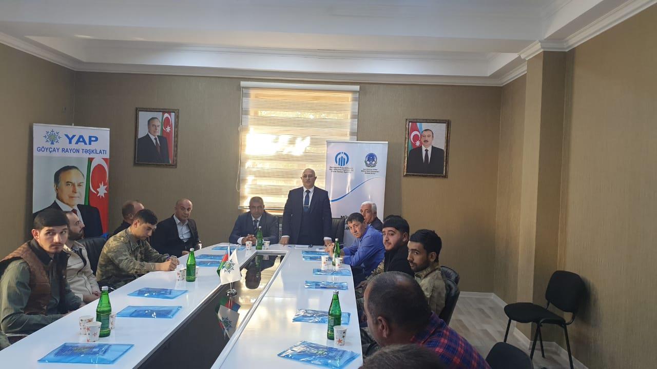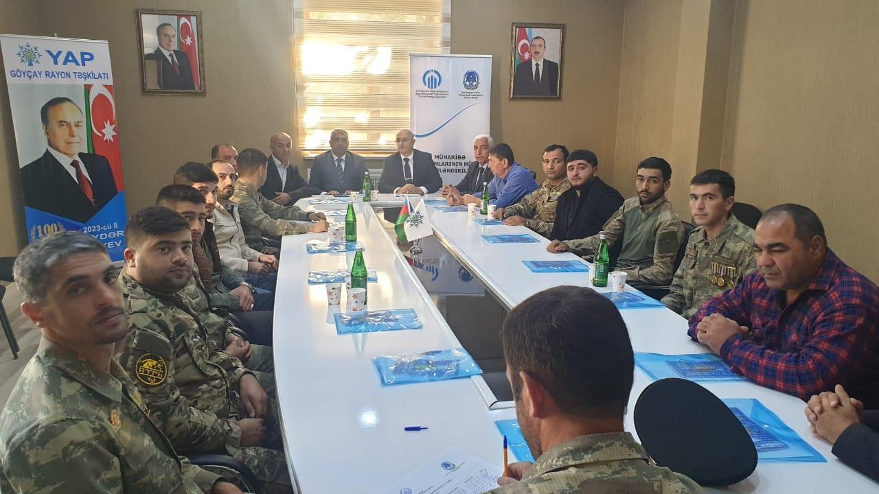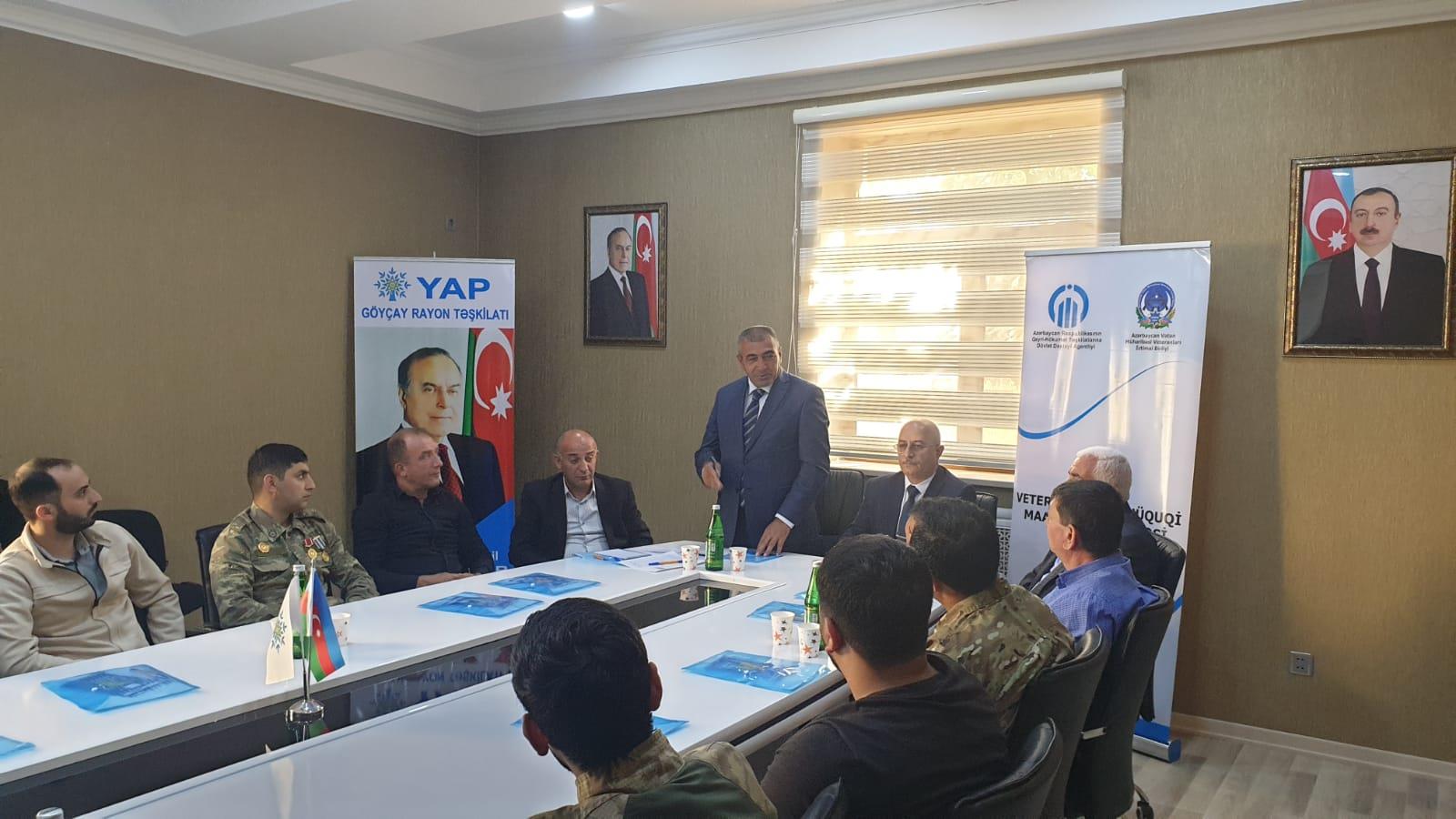 Oktyabrın 6-da Azərbaycan Respublikası Qeyri-Hökumət Təşkilatlarına Dövlət Dəstəyi Agentliyinin maliyyə dəstəyi və Azərbaycan Vətən Müharibəsi Veteranları İctimai Birliyinin (AVMVİB) təşkilatçılığı ilə Göyçay rayonunda, YAP Göyçay rayon təşkilatının akt zalında “Müharibə Veteranlarının Hüquqi Maarifləndirilməsi” adlı layihə üzrə tədbir keçirilib.