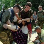 Soyqırım Ratko Mladiçin tabeçiliyindəki serb ordusu tərəfindən törədilib. Bosniyalı əsgərlərin nəzarətindǝ olan bölgəyə qadın və uşaqların getmǝsinǝ icazə verən serblər, meşə ilǝ örtülü ǝrazidǝ, fabriklərdə və anbarlarda azı 8 min 372 bosniyalını qǝtlǝ yetirib.