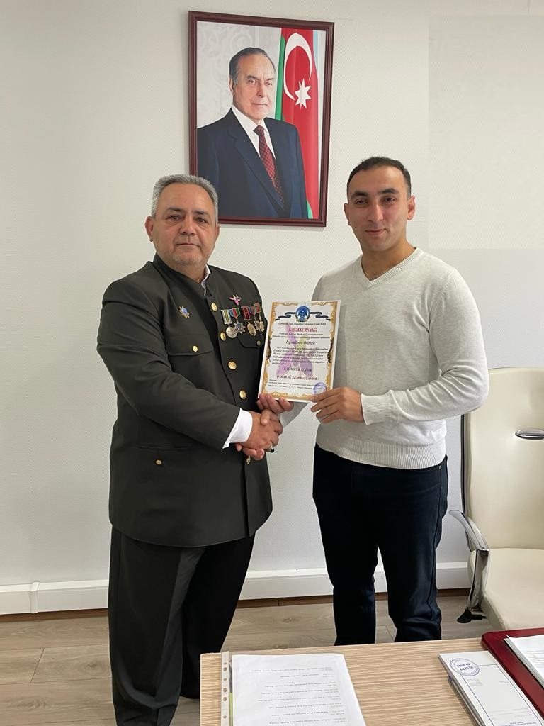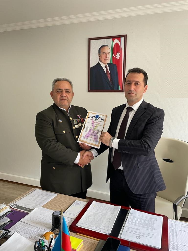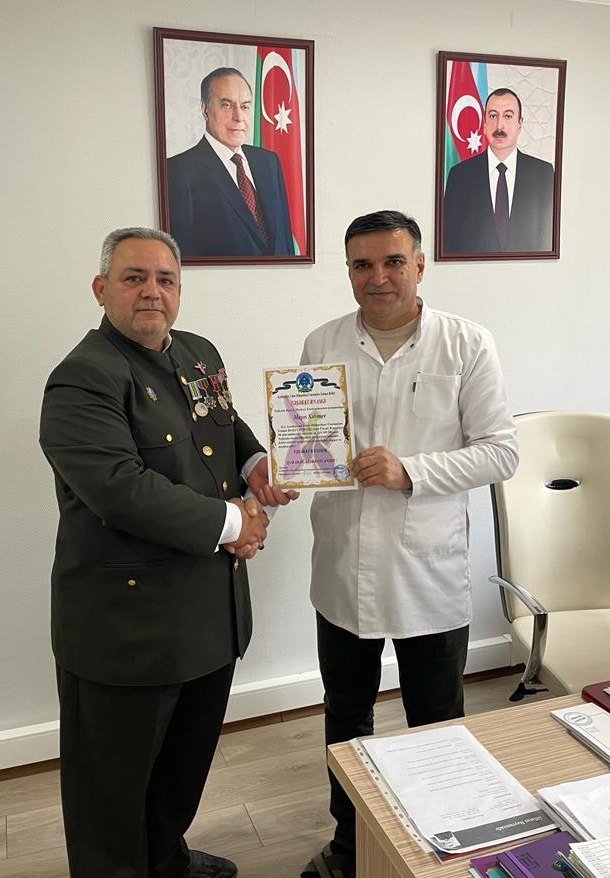 Azərbaycan Vətən Müharibəsi Veteranları İctimai Birliyi sədri Fizuli Rızaquliyev başda olmaqla (AVMVİB)-nin Neftçala rayon şöbəsin qaziləri və Şəhid ailələri adından Neftçala RMX stomatoloqu Mayıs həkimə